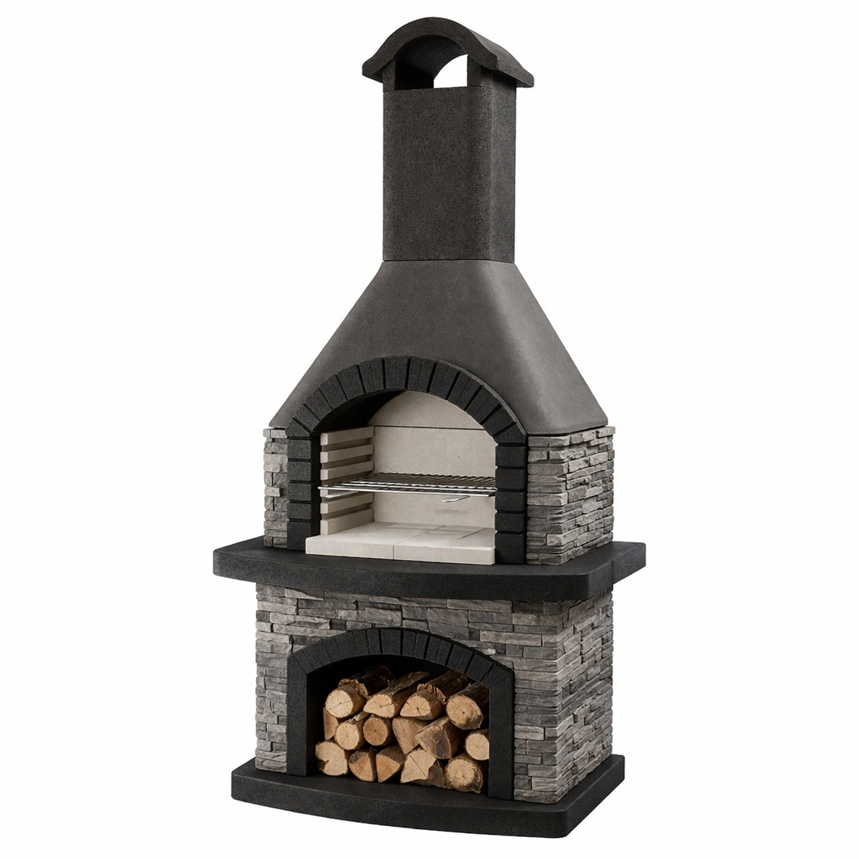 Tipo de Combustible: Leña. Uso: Exterior. Funciones Adicionales: Espacio para almacenar leña.